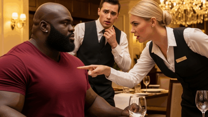 Shaquille O’Neal entra dans un restaurant luxueux en plein cœur de la ville, vêtu d’une tenue décontractée légèrement froissée, l’air d’une journée ordinaire. Il choisit une petite table discrète, s’efforçant de ne pas attirer l’attention, tandis que la lumière scintillante des lustres en cristal illuminait l’espace autour de lui. Cependant, avant même qu’il puisse commander, une serveuse s’approcha de lui avec un regard méprisant et un air arrogant.