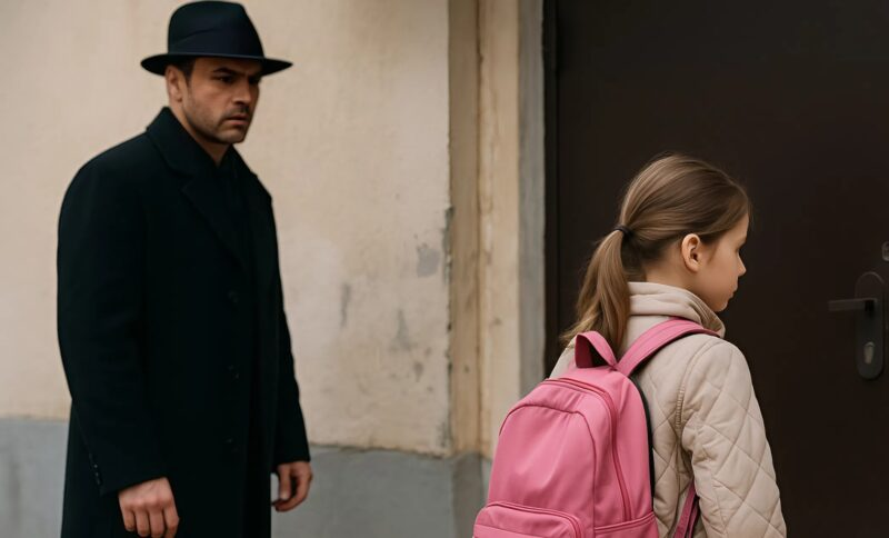 La fillette de sept ans rentrait chez elle après l’école. Elle tenait son cartable, dont les cahiers dépassaient de manière irrégulière, et sur son épaule pendait une écharpe qui glissait sans cesse. La cour était calme et vide. Seul quelqu’un se tenait près de l’entrée.
