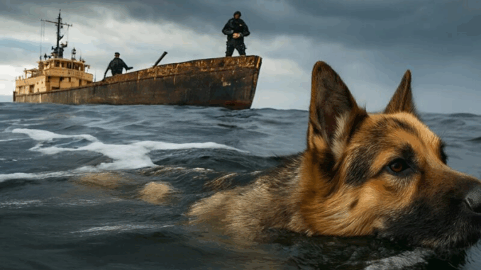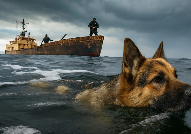 Tout le monde se précipita vers la rambarde. Devant eux se trouvait bel et bien un berger allemand, nageant seul, au beau milieu de l’immense mer. Les marins échangèrent des regards étonnés : comment un chien avait-il pu atterrir ici ?