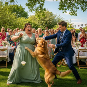 Mon chien, Koko, qui était tranquillement allongé près de notre table, s’est soudain levé, a foncé sur la femme et l’a mordue au bras. La femme a hurlé de douleur et de peur, tentant de se défendre et nous suppliant de le retirer. Les invités ont accouru, y compris ma fiancée.