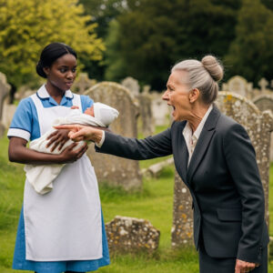 Là, agenouillée devant la tombe de William, se tenait une jeune femme noire vêtue d’un uniforme de serveuse bleu délavé. Son tablier était froissé. Ses épaules tremblaient. Dans ses bras, enveloppé dans une douce couverture blanche, se tenait un bébé – âgé de quelques mois peut-être.