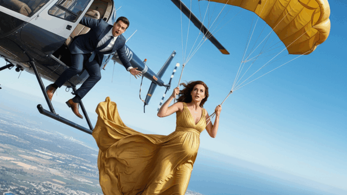 Tandis que le vent sifflait autour d’elle, Amelia tendit la main derrière elle et trouva le parachute caché sous son manteau. Elle ajusta rapidement son harnais, priant pour avoir assez de temps. L’hélicoptère n’était déjà qu’un point lointain au-dessus d’elle, et le monde en dessous semblait à des années de distance.
