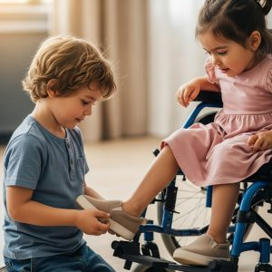 La petite fille l’observait avec curiosité. Ses yeux bleus brillaient d’une manière qu’Eduardo n’avait pas vue depuis longtemps. « Bonjour, princesse », dit doucement Mateo. « Veux-tu jouer avec moi ? » Valeria marmonna quelques mots incompréhensibles et tendit ses petits bras vers le garçon. Mateo s’assit par terre près de la chaise et commença à chanter une douce mélodie tout en massant délicatement les pieds de la fillette. « Qu’est-ce que tu fais ? » chuchota Daniela à Eduardo. « On dirait de la réflexologie », répondit Eduardo, surpris.