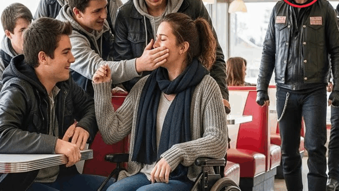 Elle s’appelait Clara, et bien que son visage exprimât la force tranquille de quelqu’un qui en avait vu de toutes les couleurs, ses mains tremblantes trahissaient son malaise. Les garçons de la table voisine ne se contentèrent pas de rire d’elle. Ils franchirent une limite qu’il ne fallait jamais franchir. L’un d’eux lui arracha son assiette des genoux, faisant s’écraser la nourriture sur le carrelage, et un autre repoussa son fauteuil roulant d’un geste moqueur. Les clients restèrent figés.
