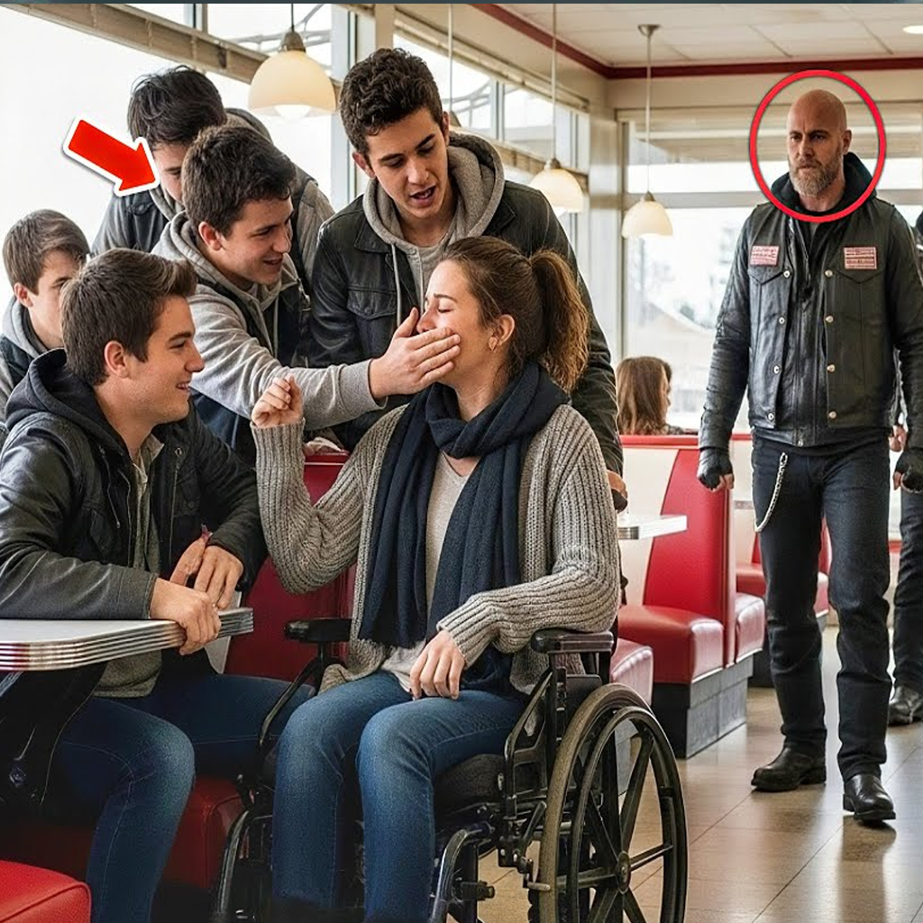 Le soleil matinal inondait les façades chromées du Maplewood Diner, un lieu où l’odeur du beurre et du sirop promettait habituellement chaleur et réconfort. Mais ce jour-là, la lumière ne parvenait pas à dissiper l’obscurité qui s’était insinuée dans le cœur de quelques garçons cruels. Dans une banquette près de la fenêtre, une jeune fille en fauteuil roulant tenait devant elle son assiette de crêpes, tel un fragile rempart contre le monde.