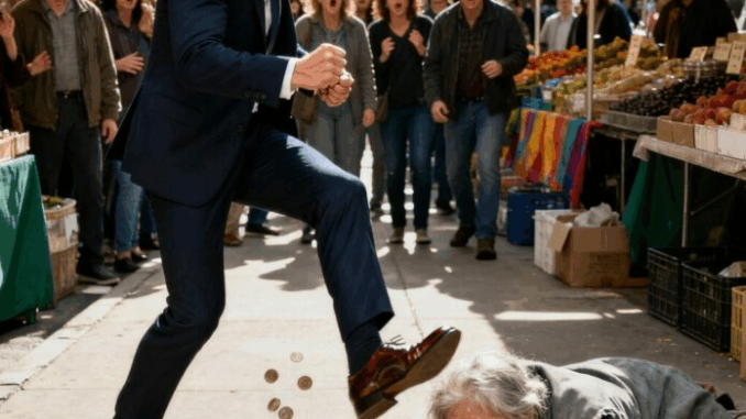 En traversant les étals de fruits, son regard s’arrêta sur une vieille femme assise au bord du trottoir, tenant une pancarte en carton où l’on pouvait lire : « Faim. Aidez-moi, s’il vous plaît. » Son manteau était déchiré, ses cheveux gris et emmêlés, et ses mains tremblantes serraient un petit gobelet en papier à moitié rempli de pièces. Daniel fronça les sourcils. Il détestait la vue des mendiants — des gens qui, à ses yeux, refusaient de se battre pour leur survie.