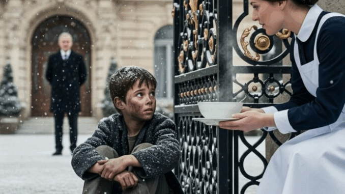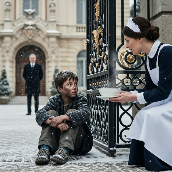 Tout en travaillant, elle remarqua un mouvement près du portail en fer forgé. Un garçon – petit, maigre, pieds nus – se tenait là, agrippé aux barreaux. Ses vêtements étaient sales, son visage pâle, et ses bras serrés contre lui. Il avait l’air d’avoir six ou sept ans. Le genre d’enfant qui devrait être à l’école, et non pas grelotter de froid.