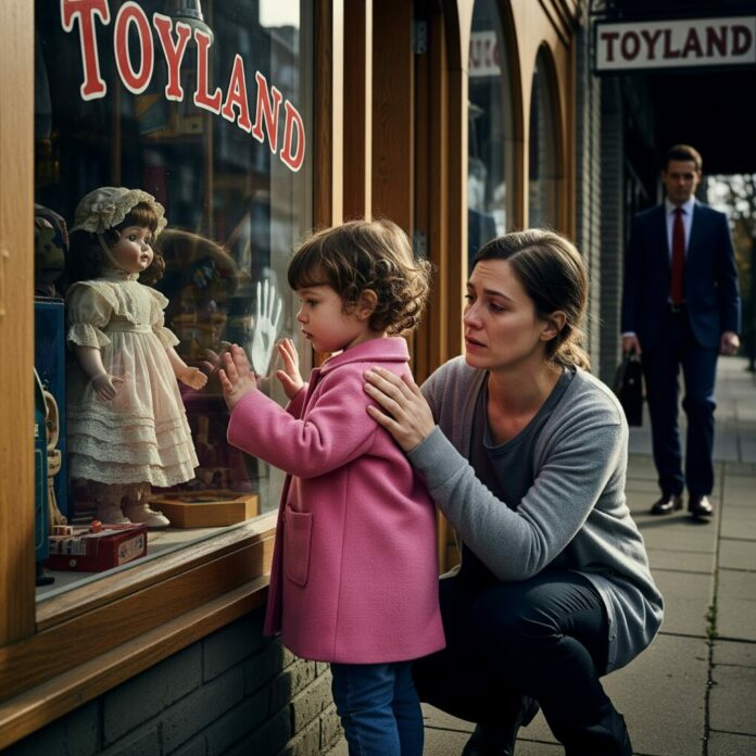 Lily jeta un coup d’œil par-dessus l’épaule d’Emily, une lueur d’espoir brillant dans ses grands yeux. Emily hésita, partagée entre fierté et nécessité, mais finit par acquiescer. À l’intérieur du magasin, Lily se dirigea vers les poupées, les yeux pétillants comme ceux d’un enfant découvrant un monde merveilleux. Elle désigna une poupée sirène aux écailles scintillantes.