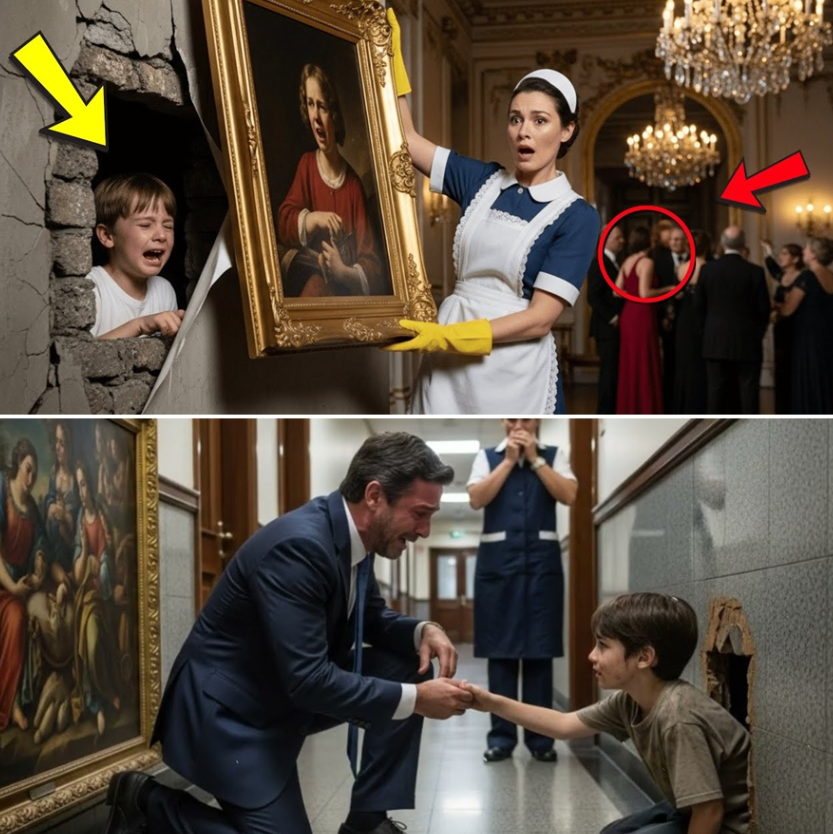 Le tableau glissa silencieusement, révélant une profonde brèche dans le mur. Un murmure d’horreur parcourut le groupe d’invités qui les avaient suivis. Alejandro se figea, fixant l’ouverture obscure, incapable de comprendre ce qu’il voyait. « Lucas », appela-t-il d’une voix tremblante. « Mon fils… » Pendant un instant terrible, il n’y eut aucune réponse. Le cœur de Carmen rata un battement.