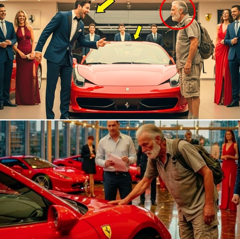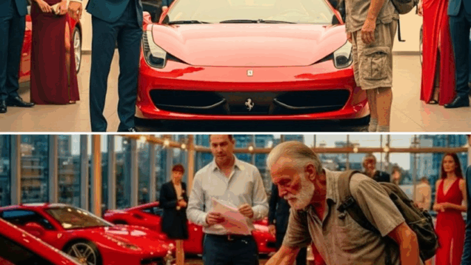 « Si vous pouvez vous offrir une Ferrari, je vous en offre deux. » Le millionnaire ricana, sa voix résonnant contre les parois vitrées de la concession. Un éclat de rire général s’éleva, tel un orchestre de mépris. Debout devant la voiture rouge rutilante, un homme d’un certain âge, en sandales et sac à dos usé, le fixait sans baisser les yeux.