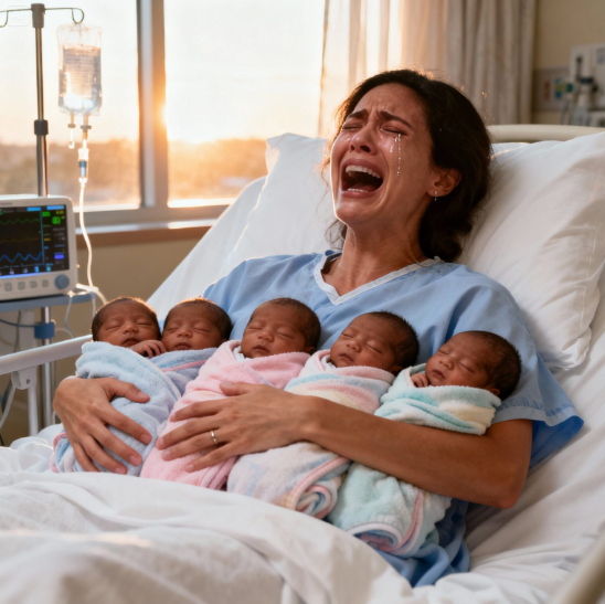 La maternité résonnait de cinq petites voix qui criaient à l’unisson. La jeune mère, épuisée, souriait à travers ses larmes en contemplant ses quintuplés. Ils étaient petits, fragiles, mais parfaits.