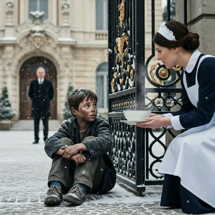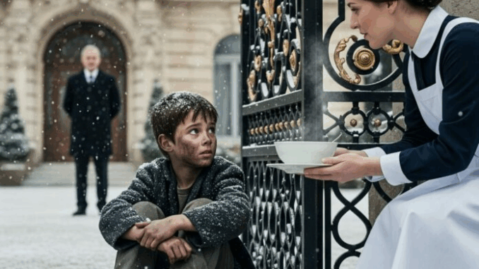 C’était un de ces après-midi gris où le ciel semblait prêt à s’effondrer. Claire Bennett, femme de chambre du vaste domaine Harrington à Boston, balayait les marches de marbre lorsqu’elle aperçut une petite silhouette près du portail en fer forgé.