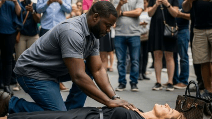 Une femme d’une cinquantaine d’années était étendue sur le trottoir, son sac à main de marque ouvert, ses bijoux scintillant au soleil. La foule se figea. Les gens la dévisageaient, les téléphones planaient dans les airs, filmant au lieu de réagir. Le cœur de James rata un battement. Il laissa tomber son sac à dos et se fraya un chemin.