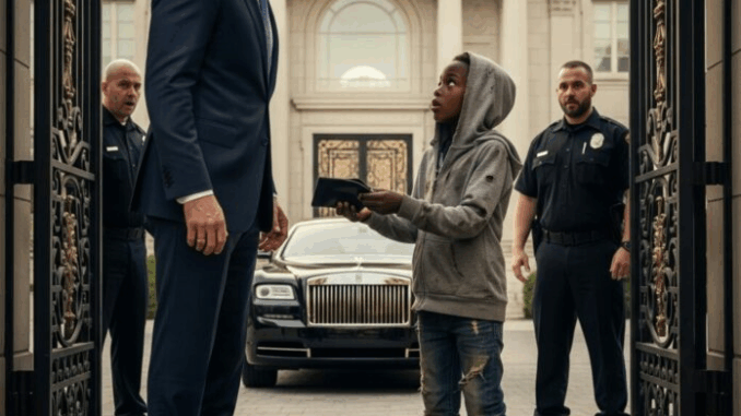 Avant que Marcus ne puisse protester, une voix grave retentit depuis l’allée. Un homme de grande taille, vêtu d’un costume élégant, s’approcha. C’était William Harrington en personne. Il regarda le garçon, puis le portefeuille qu’il tenait à la main.