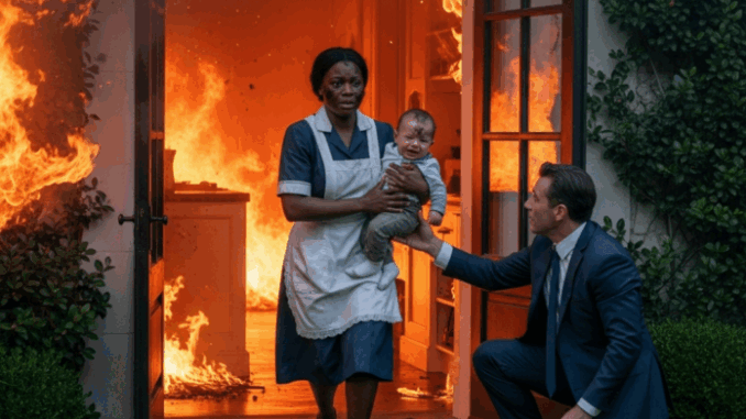 Richard s’est laissé tomber à leurs côtés, ses mains tremblantes cherchant son fils. Mais son regard ne pouvait se détacher de la servante qui avait tout risqué. Le manoir brûlait derrière eux, pourtant, à cet instant, seule comptait la vie qu’elle avait sauvée des flammes.