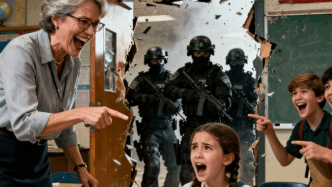 Blottis dans l’obscurité, les élèves entendirent le bruit sourd de bottes résonner dans le couloir. Des cris éclatèrent, puis se turent. La porte de la classe fut enfoncée par une charge explosive, et une équipe en tenue tactique fit irruption. Des lasers rouges balayèrent la pièce.