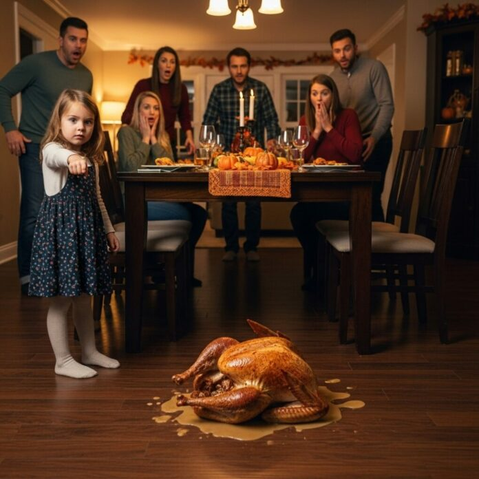 Au moment où la dinde de Thanksgiving a touché le parquet de notre maison à Seattle, la pièce s’est figée. Les conversations se sont interrompues net. Les fourchettes sont restées suspendues dans les airs. Douze membres de la famille ont contemplé la scène avec une incrédulité collective tandis que la sauce giclait sur le tapis et que ma fille de cinq ans, Emma Miller, se tenait près de la volaille abattue, telle une petite guerrière venant de vaincre un monstre.