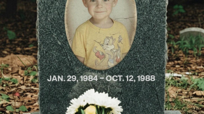 Mon fils était accroupi devant une petite pierre tombale nichée entre deux ormes. Son doigt était appuyé contre le devant de la pierre, comme s’il traçait quelque chose du doigt.
