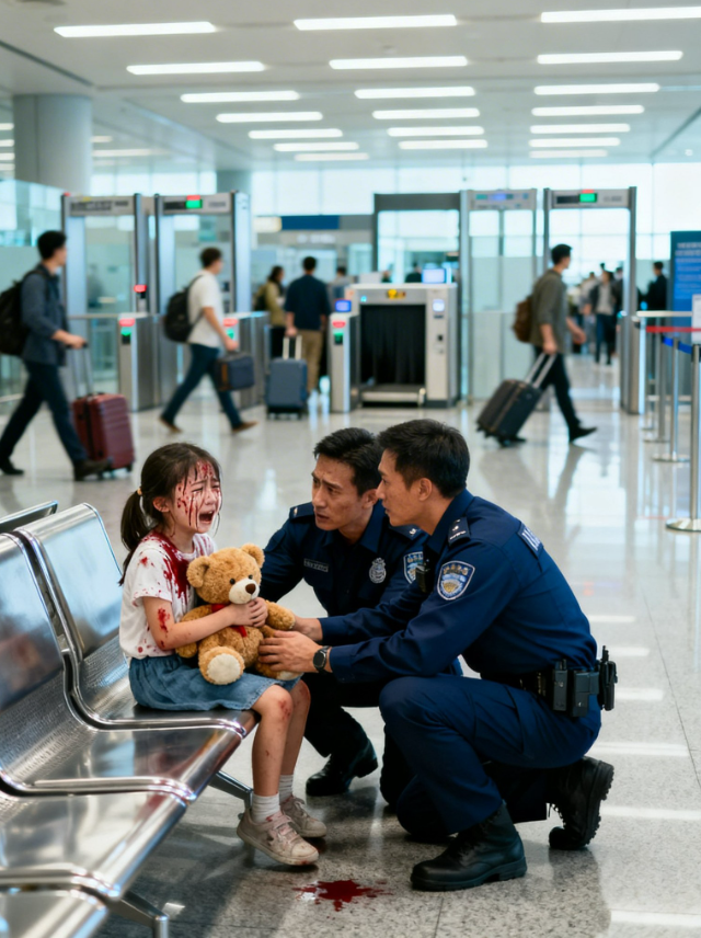 Elle était assise seule sur un banc près de l’entrée du contrôle de sécurité, son lapin en peluche inerte sur ses genoux, les épaules voûtées. Un agent de sécurité en uniforme se tenait près d’elle et lui parlait doucement. Un autre agent, à proximité, tenait un bloc-notes.